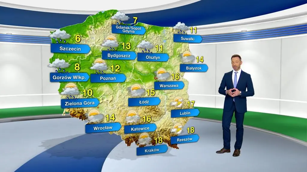 Dzień na północy i zachodzie kraju zapowiada się pochmurno z przejaśnieniami, okresami wystąpią tam jednak opady deszczu rzędu 1-3 litrów na metr kwadratowy. Na pozostałym obszarze kraju będą pojawiać się rozpogodzenia. Termometry pokażą maksymalnie od 6 st. C na Pomorzu Zachodnim, przez 15 st. C w centrum kraju, do 18-19 st. C w rejonie Podkarpacia. Wiatr będzie słaby i umiarkowany, w większości kraju południowy, tylko na północnym zachodzie powieje z północy.
