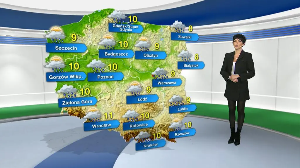 Nocą będzie pochmurno z niewielkimi przejaśnieniami. Okresami wystąpią opady deszczu do 5-10 litrów na metr kwadratowy, a na północy niewykluczone są burze. Temperatura wyniesie minimalnie od 4 stopni Celsjusza na Suwalszczyźnie, przez 6 st. C w centrum kraju, do 7 st. C na zachodzie. Powieje południowo-zachodni i zachodni, umiarkowany i dość silny wiatr. W porywach osiągnie do 50-60 kilometrów na godzinę, a wysoko w górach do 80-100 km/h.