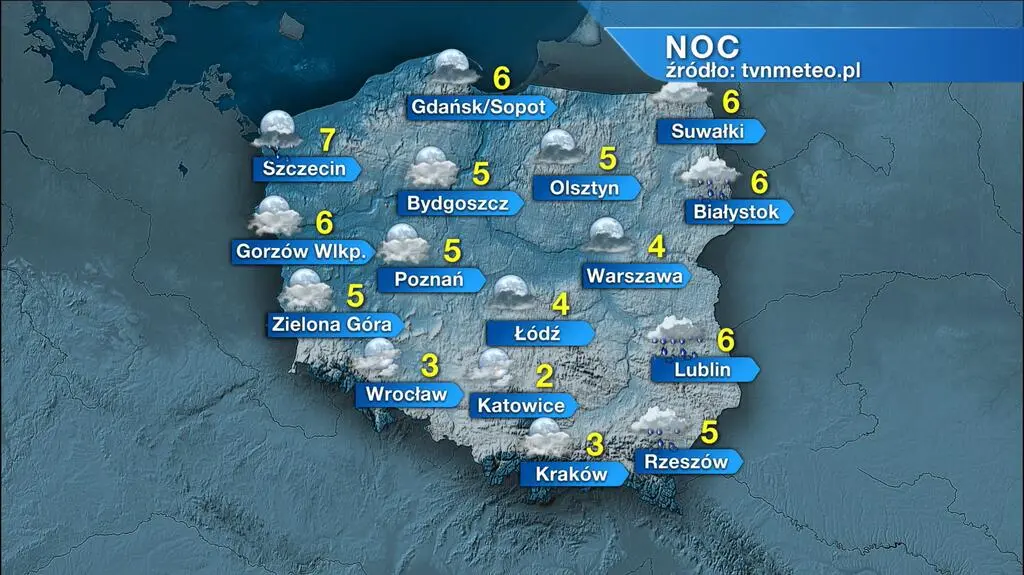 Pogoda na noc - Gdańsk, Gdynia, Sopot