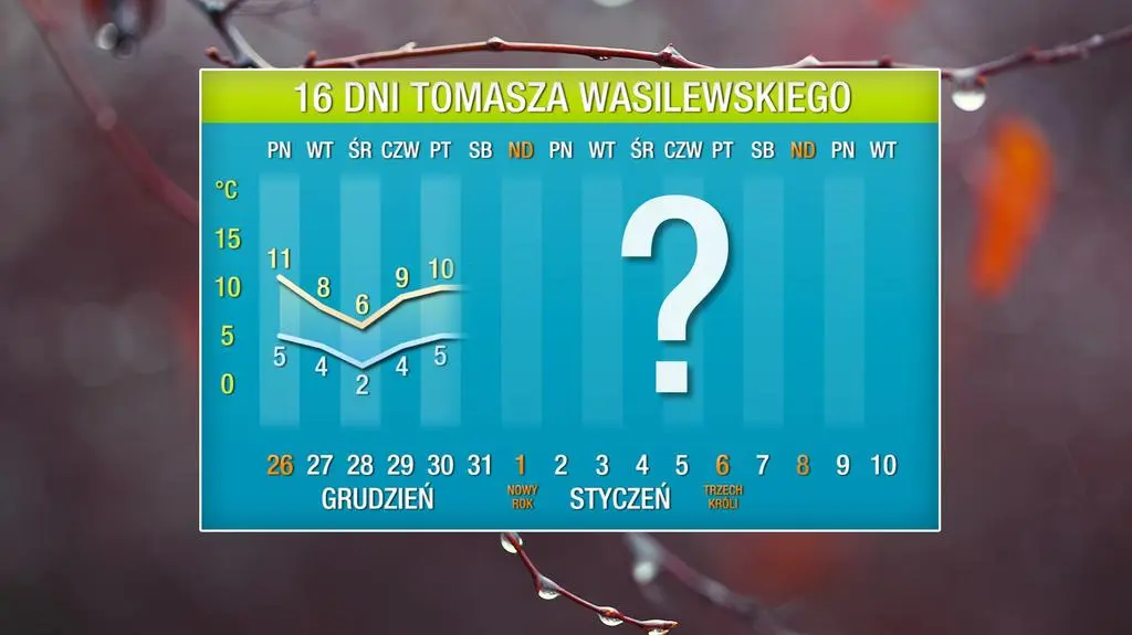 Na sam koniec roku, w okolicach 30 i 31 grudnia, znów do Polski napłynie cieplejsze powietrze. - Zarówno ostatni dzień tego roku, jak i pierwszy nowego zapowiadają się relatywnie ciepło - informuje rzecznik Instytutu Meteorologii i Gospodarki Wodnej Grzegorz Walijewski.