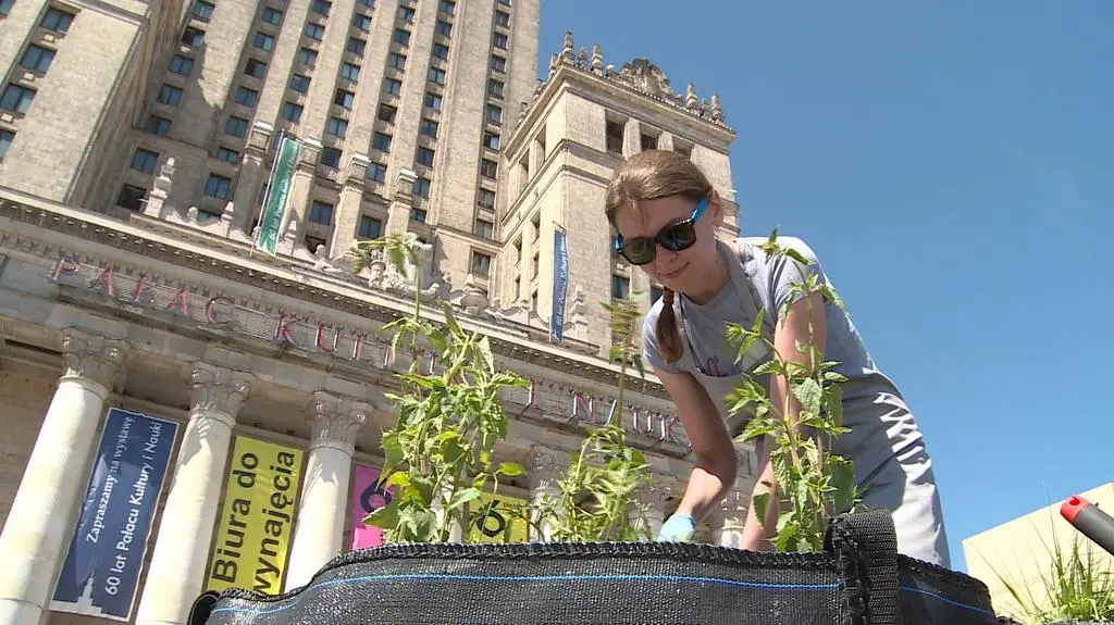 Bazylia, pomidory, tymianek. Pl. Defilad zamienili w ogródek