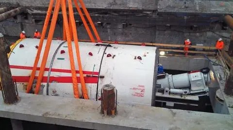 TBM o imieniu Anna umocowano na linach, za które chwycił specjalny dźwig. - Jej opuszczanie zaczęło się około godziny 9.30 i trwało ponad godzinę - mówi Tomasz Zieliński, reporter tvnwarszawa.pl.