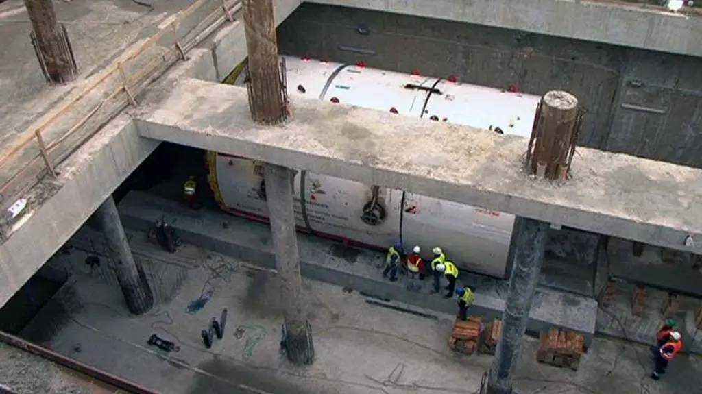 Proces umieszczania TBM-ów będzie dobrze widoczny również zza ogrodzenia placu budowy. Każda z maszyn składa się z trzech dużych modułów (głowica i zaplecze technologiczne), które są kolejno opuszczane pod ziemię przez otwór w korpusie stacji.