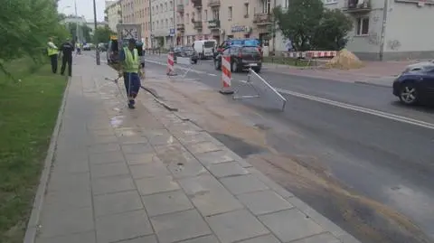 I dodał, że widać zapadnięty chodnik a także rozkopane miejsce awarii.