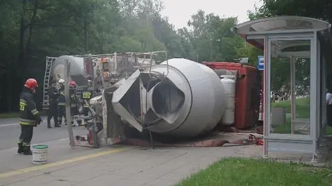 Do zdarzenia doszło około godziny 12 na Odlewniczej, w okolicy Marywilskiej. - Betoniarka jadąca Odlewniczą skręcała w lewo i przewróciła się tuż przy przystanku autobusowym - relacjonował Lech Marcinczak, reporter tvnwarszawa.pl.