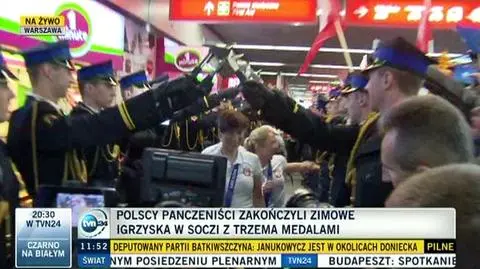 W rytm muzyki z filmu "Rocky" łyżwiarze przeszli przez szpaler utworzony przez podchorążych ze Szkoły Głównej Służby Pożarniczej. Potem rękę Bródki uścisnął m.in. minister spraw wewnętrznych i komendant główny Państwowej Straży Pożarnej.