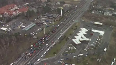 Od środy rolnicy blokowali drogę w kierunku Warszawy. Stali na Trakcie Brzeskim, na rogatkach stolicy. Policja w czwartek rano poprosiła ich o jak najszybsze odblokowanie drogi. Ci jednak zdecydowali, że zostaną do południa. Skalę protestu dobrze widać na zdjęciach z Błękitnego 24.