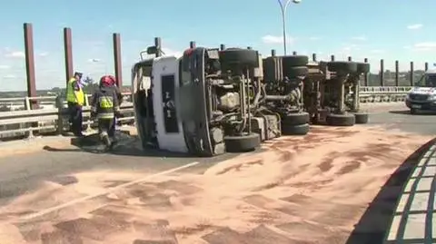 - Utrudnienia na pewno potrwają długo, bo jest problem z postawieniem pojazdu na koła. Ciężarówka leży na środku estakady. Kiedy strażacy zaczną ją podnosić, może się okazać, że się nie zmieści. Dlatego służby muszą zastanowić się, jak to zrobić - podał przed 14.00 Marcinczak.