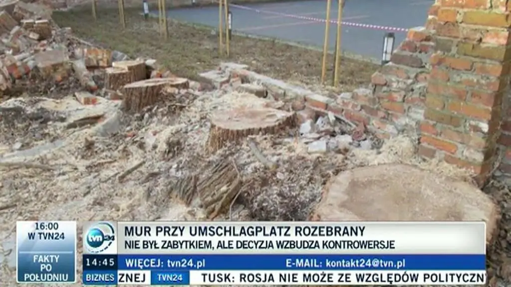 Wycięcie drzew poprzedziło we wtorek rozbiórkę muru.