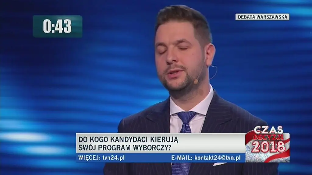 21.51 Paweł Tanajno: Za dużo jest w nas wiary w polityków i w kandydatów na prezydenta stolicy. Jako zwykły obywatel mogę spojrzeć na to, jak obietnice w ciągu ostatnich 20-30 lat rozpływały się we mgle. Obiecują, a potem nic nie realizują.