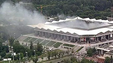 Na murawie pojawiły się serpentyny, a powietrzu unosił się dym od rac. Służby porządkowe musiały uprzątnąć murawę przed rozpoczęciem spotkania. To opóźniło mecz o kwadrans.