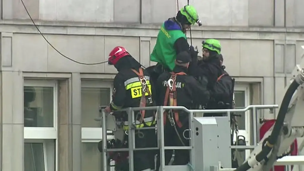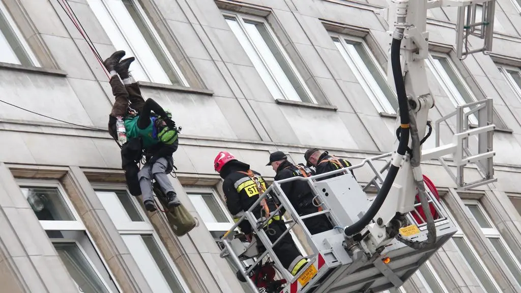 - Grupa osób, przy pomocy straży pożarnej, została sprowadzona na dół. Zrobiono to w sposób profesjonalny, bezpieczny. Nikomu nic się nie stało. Obecnie są w naszej dyspozycji. Zostaną przesłuchane. Nikt nie stawiał czynnego oporu, był to raczej bierny opór - część nie ułatwiała pracy policjantów. Jak się dostały na dach budynku, policja będzie to ustalać - powiedział TVN24 Mariusz Mrozek, rzecznik stołecznej policji.