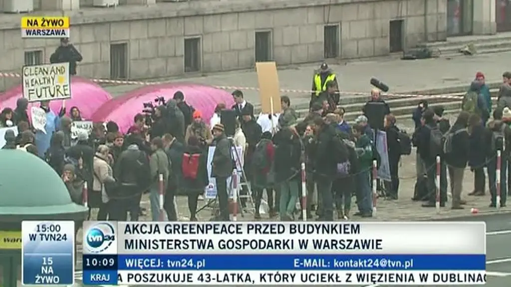 Najpierw akcja Greenpeace na dachu Ministerstwa Gospodarki, później protest przed samym gmachem. W poniedziałek ekolodzy opanowali plac Trzech Krzyży. Jak poinformował Mariusz Mrożek ze stołecznej komendy policji funkcjonariusze zatrzymali 22 osoby. Za naruszenie prawa grozi im kara grzywny.