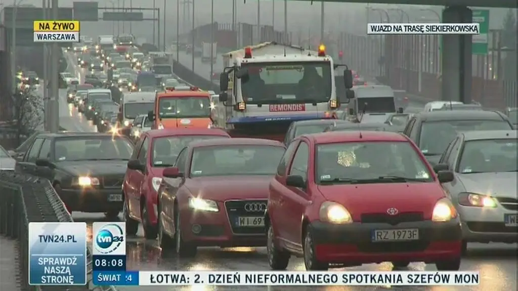 Kierowcy w czwartek rano znów utknęli na dojazdach do Trasy Siekierkowskiej i mostu Poniatowskiego. Sytuację na żywo relacjonowaliśmy na antenie TVN24: