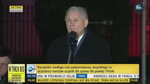 - To pierwszy marsz w 2018 roku, w roku, w którym - jestem o tym przekonany - dojdziemy do celu, w roku, w którym te marsze przestaną być już potrzebne - tak prezes PiS Jarosław Kaczyński rozpoczął swoje przemówienie. - Już niedługo czas podsumowania tego wszystkiego, co uczestnicy tych marszów uczynili dla sprawy, dla prawdy, dla Polski, dla jej siły, godności, dla pamięci tych, którzy polegli, dla pamięci prezydenta RP Lecha Kaczyńskiego, jego małżonki, prezydenta na uchodźstwie Ryszarda Kaczorowskiego i tych wszystkich, którzy zginęli pamiętnego 10 kwietnia 2010 roku w Smoleńsku - powiedział prezes PiS. - To było i w dalszym ciągu jest wielkie dzieło, jeszcze niedokończone, ale sądzę, że już niedługo będziemy mogli powiedzieć, że ten finał nastąpił - dodał.