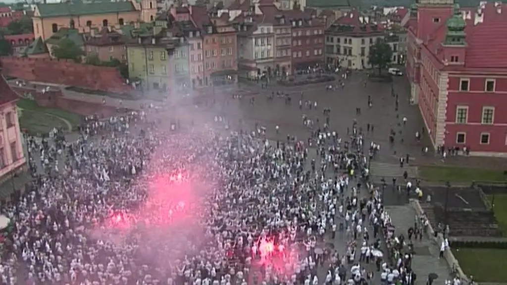 Czerwono od rac przed kolumną Zygmunta