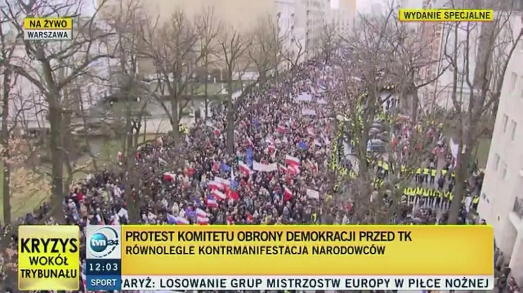 Sympatycy Komitetu, którzy w czwartek zebrali się przed Trybunałem mieli ze sobą flagi KOD-u, flagi Unii Europejskiej oraz w polskich barwach narodowych. Wznosili okrzyki: "Niezawisłość Trybunału", "Obronimy konstytucję"; "Polska w Unii, jesteśmy dumni", "Tu jest Polska".KOD manifestował w czasie, kiedy TK ogłaszał wyrok ws. konstytucyjności nowej ustawy o TK - zaskarżonej przez posłów PO, Nowoczesnej i PSL, a także Rzecznika Praw Obywatelskich. Autorem projektu bazowego był PiS. Zgromadzeni z zadowoleniem przyjęli rozstrzygnięcie Trybunału o niekonstytucyjności kilkunastu przepisów nowej ustawy.Lider KOD Mateusz Kijowski powiedział dziennikarzom, że orzeczenie Trybunału jest zgodne z wcześniej już przedstawionymi opiniami gremiów prawniczych w Polsce i za granicą. - Komisja Europejska wydawała w tej sprawie opinię opierając się na opinii Komisji Weneckiej, polski Sąd Najwyższy wyraził opinię w tej sprawie, Rada Adwokacka, stowarzyszenia sędziowskie, wszystkie te ciała już od dawna mówiły, że ta ustawa zaproponowana przez PiS ostatnio jest niezgodna z konstytucją, teraz mamy potwierdzenie oficjalne - podkreślił Kijowski.Lider KOD był pytany o środową wypowiedź prezesa PiS Jarosława Kaczyńskiego, który powiedział, że nowa ustawa o TK jest rozpatrywana przez Trybunał na podstawie ustawy i w trybie, które nie obowiązują; wydane w ten sposób akty TK mają "charakter prywatny" i nie mogą nabrać mocy prawnej poprzez publikację.- Prezes partii rządzącej nie ponosi żadnej odpowiedzialności za nic w Polsce, oprócz wewnętrznej odpowiedzialności przed partią. Odpowiedzialność za to, co dzieje się w Polsce ponosi premier rządu, prezydent, marszałek Sejmu, to są osoby, które można w razie złamania prawa pociągnąć do odpowiedzialności - zaznaczył Kijowski.Jak zapowiedział, jeżeli prawo w Polsce nie będzie dalej przestrzegane KOD będzie kontynuował protesty, domagać się publikacji wyroków TK i przestrzegania konstytucji.Przed Trybunałem pikietowało także kilkanaście osób ze stowarzyszenia Niezłomni, przewodniczył im działacz opozycji demokratycznej w PRL Adam Słomka. Zgromadzeni wyrażali krytyczne głosy pod adresem TK, mieli ze sobą duży transparent ze zdjęciem pięciu sędziów TK, w tym prezesa Andrzeja Rzeplińskiego i napisem: "30 lat wiernej służby, od stanu wojennego, po dziś dzień".