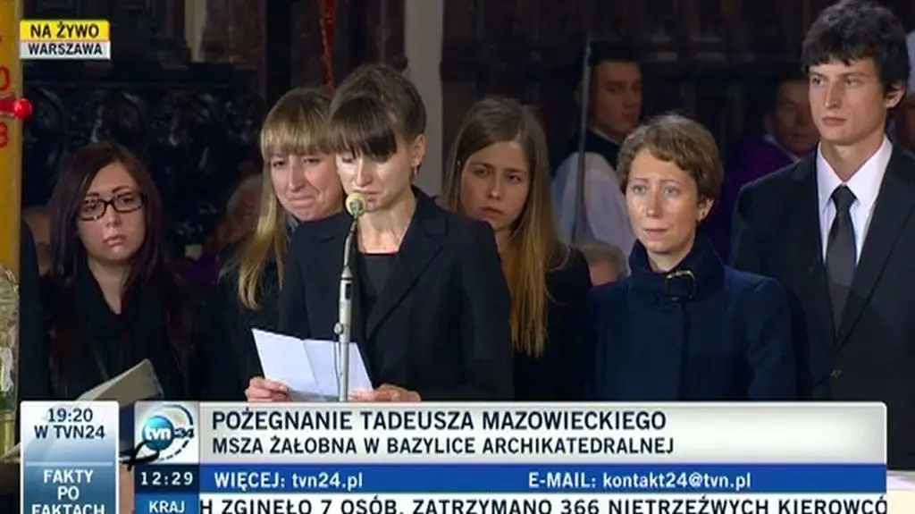 12:28 - Kochany dziadku, jesteśmy to wszyscy razem, jak lubisz. Słowa nie wyrażą smutku, jaki odczuwamy - mówiła wnuczka zmarłego premiera, żegnając Go w imieniu wszystkich wnuków.