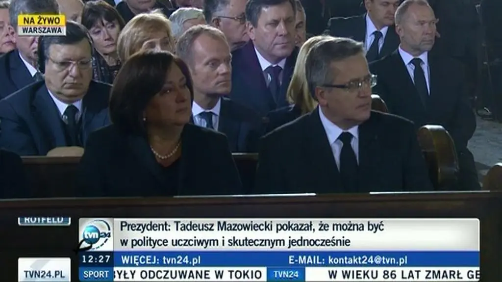 - Żegnam Cię Tadeuszu w imieniu całego państwa, w imieniu osób które miały szczęście Cię poznać, uczyć się Twojej mądrej odwagi, wymagających zasad - podkreślał prezydent.Komorowski mówił, że Mazowiecki pokazywał, że w polityce można być uczciwym i skutecznym zarazem.