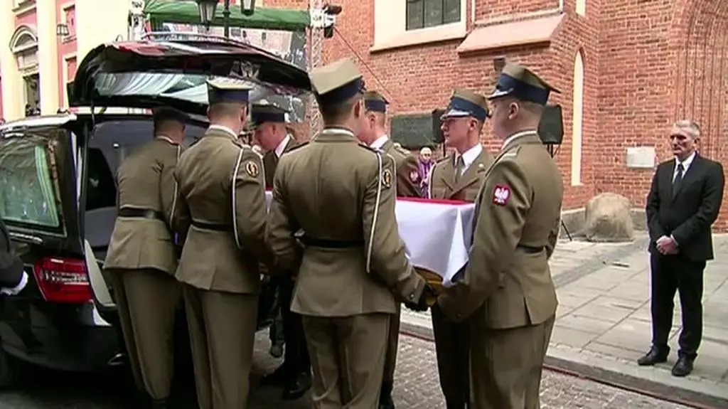 10:56 Trumna z b. premierem została wprowadzona do Bazyliki Archikatedralnej przez żołnierzy Wojska Polskiego. Zgromadzeni goście czekają na rozpoczęcie się mszy żałobnej.
