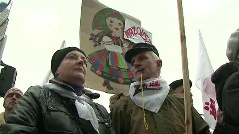 Manifestanci przynieśli flagi Solidarności i transparenty treści: "Struzik Izbana popiera a Mazowsze wymiera" oraz "Izban członków komisji eliminuje a Struzik to akceptuje". O co chodziło?