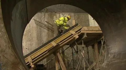 - Prace są bardzo zaawansowane. Pomieszczenie, gdzie będą tory odstawcze, jest już właściwie w stanie surowym. Robotnicy budują tam techniczy peron dla maszynistów. Można też spojrzeć w głąb tunelu, w kierunku stacji Rondo ONZ – relacjonuje Tomasz Zieliński, reporter tvnwarszawa.pl.