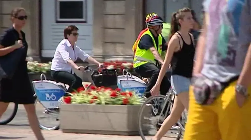 Hanna Gronkiewicz - Waltz wypróbowała miejskie rowery