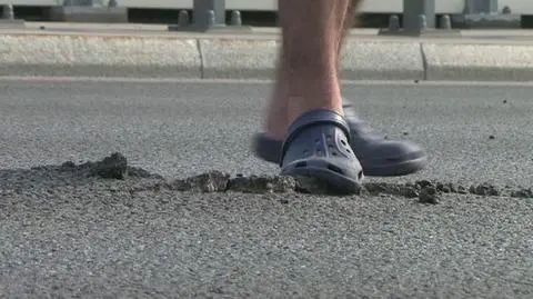 O problemach z asfaltem na trasie mostu Północnego informowaliśmy w czwartek. - Nawierzchnia odchodzi dużymi płatami, a pod nią wszystko jest płynne - relacjonował Lech Marcinczak, nasz reporter.