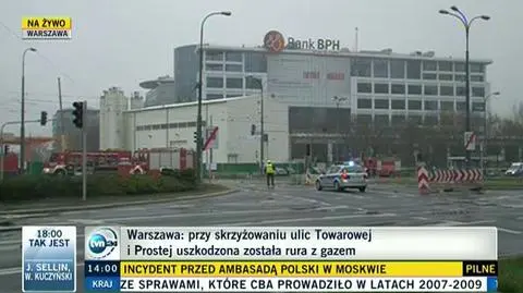 Jak doszło do awarii? - Podczas rozbiórki fundamentu magazynu pękła rura z gazem. Nikomu nic się nie stało - mówił o 13.00 Mateusz Witczyński, rzecznik wykonawcy, firmy AGP Metro Polska.