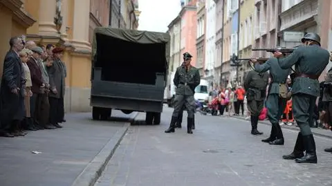 - Ona w pewnym sensie symbolizuje cały film - powiedział PAP Robert Gliński o zrealizowanej w piątek scenie z udziałem głównych bohaterów Tadeusza Zawadzkiego Zośki i Jana Bytnara Rudego. Zdjęcia kręcono na ul. Piwnej na Starym Mieście, gdzie można było usłyszeć strzały i zobaczyć aktorów - grających oprawców w niemieckich mundurach i ustawianych pod ścianą do rozstrzelania polskich cywili. Podczas przedstawionej w filmie egzekucji ludności cywilnej zabite zostaje m.in. dziecko, 13-letni chłopiec, Gołębiarz, którego Bytnar znał osobiście. Rudy i Zośka są świadkami egzekucji, po czym uciekają, ścigani przez Niemców.
