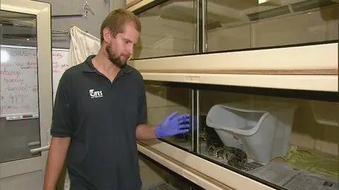 - Zwierzęta trafiają do nas wyłącznie od służb mundurowych: straży miejskiej, policji, służby celnej. Najczęściej przywozi je ekopatrol straży miejskiej. Jest u nas wąż znaleziony w ogródku we Włochach. Mężczyzna natknął się na niego w trakcie koszenia trawy. Mamy też małego podróżnika, który został znaleziony w autobusie. Mamy też jednego węża, który wyszedł jednej pani z toalety - mówił Łukasz Szczęsny, pracownik warszawskiego ośrodka CITES.