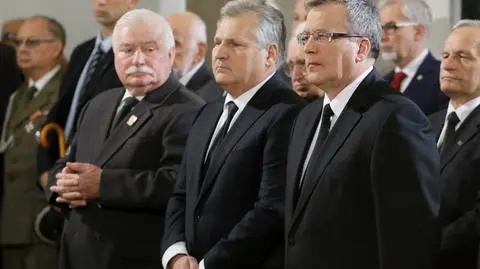 - Szacunek dla majestatu śmierci nie powinien podlegać ograniczeniom i redukcji z powodu ocen politycznych. Majestat demokratycznej i niepodległej Polski powinien być umacniany poprzez okazywanie szacunku zmarłemu prezydentowi nawet, a może właśnie szczególnie wtedy, gdy politycznie tak wiele dzieli. Tak pojmuję także i swój obowiązek prezydencki - mówił podczas mszy prezydent Bronisław Komorowski. - Dlatego żegnam dziś prezydenta czasów przełomu ustrojowego w Polsce, Wojciecha Jaruzelskiego, polityka mającego swój istotny udział w umożliwieniu pójścia przez Polskę drogą głębokich przemian systemowych po wyborach 1989 r. - dodał.