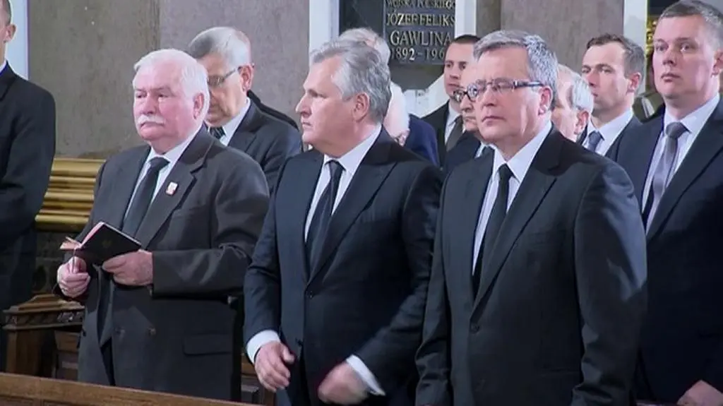 Podczas mszy świętej prezydent Komorowski oraz byli prezydenci Kwaśniewski i Wałęsa przekazali rodzinie zmarłego generała znak pokoju.