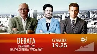 Transmisja od godziny 19.25 w TVN Warszawa, TVN 24 i TVN24.PL. Kandydaci będą odpowiadać na pytania z kilku bloków tematycznych. Od godziny 20.00 tylko na antenie TVN Warszawa będą odpowiadać na pytania widzów.