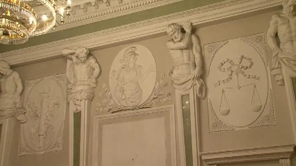 W Sali Kariatyd są kolumny w kształcie postaci ludzkich.