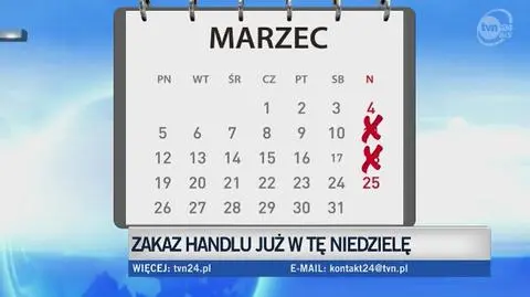 W marcu nie zrobimy zakupów również w kolejną niedzielę. Ograniczenie nie będzie za to dotyczyło 25 marca. Zgodnie z nowym prawem, w każdym miesiącu tego roku w dwie niedziele - pierwszą i ostatnią w miesiącu - handel ma być dozwolony. W 2018 roku Polacy będą mogli zrobić zakupy w sumie w 21 niedziel.