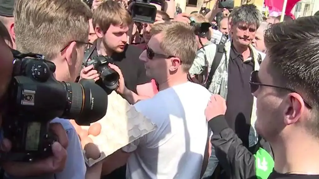 1 maja miał miejsce protest przeciwko instalacji. Tęcza obrzucona została jajami.