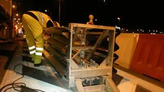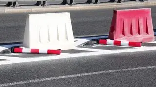 Tuż przed nowym urządzeniem poustawiano niskie biało-czerwone i plastikowe zapory, wypełnione pokruszonym betonem i słupki.