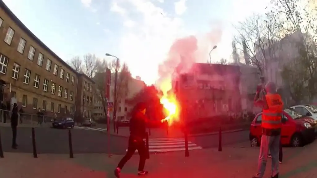 Podczas zorganizowanego w Warszawie przez środowiska narodowe 11 listopada 2013 r. Marszu Niepodległości doszło do burd m.in. w pobliżu budynku ambasady rosyjskiej. Do zamieszek doszło też przed squatem przy ul. ks. Skorupki i ul. Wilczej oraz na pl. Zbawiciela, gdzie podpalono instalację "Tęcza".