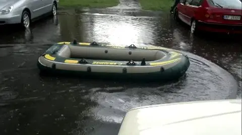 "Nowy środek lokomocji" - pisze krótko fiolek. Na nagranym przez niego filmie widać… ponton, który swobodnie, jak gdyby nigdy nic, płynie po zalanej ulicy Siedzibnej.