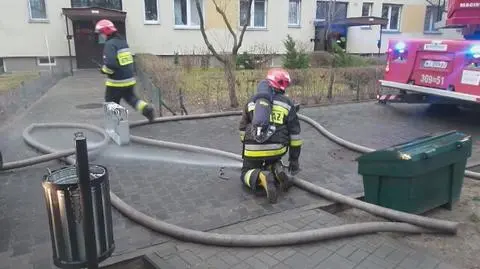 Strażacy ugasili już pożar. - W trakcie pożaru uszkodzeniu uległa rura i woda zalała mieszkanie na trzecim piętrze. Zakręciliśmy zawór główny dla mieszkania, w którym był pożar. Dalsze kroki podejmie administrator - dodał Laudy.