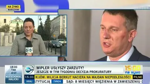 Pierwszy zarzut, jaki prokuratura chce postawić Wiplerowi, dotyczy tzw. czynnego oporu. Śledczy uważają, że poseł stosował przemoc i groźby, by policjanci przerwali interwencję.