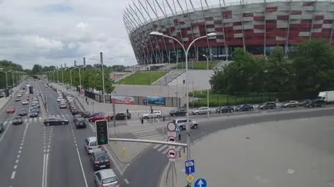 Jak podkreślał, z 3 pasów dostępnych dla kierowców w tym miejscu, wolny został tylko jeden, a i ten był często blokowany przez kierowców skręcających na stadion z naprzeciwka. - Korek na Wale Miedzeszyńskim ma około 2 kilometrów długości i tworzy się już na wysokości Wersalskiej - dodawał Marcinczak.