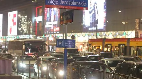W Alejach Jerozolimskich jedzie się powoli, ale jest to normalny piątkowy szczyt.