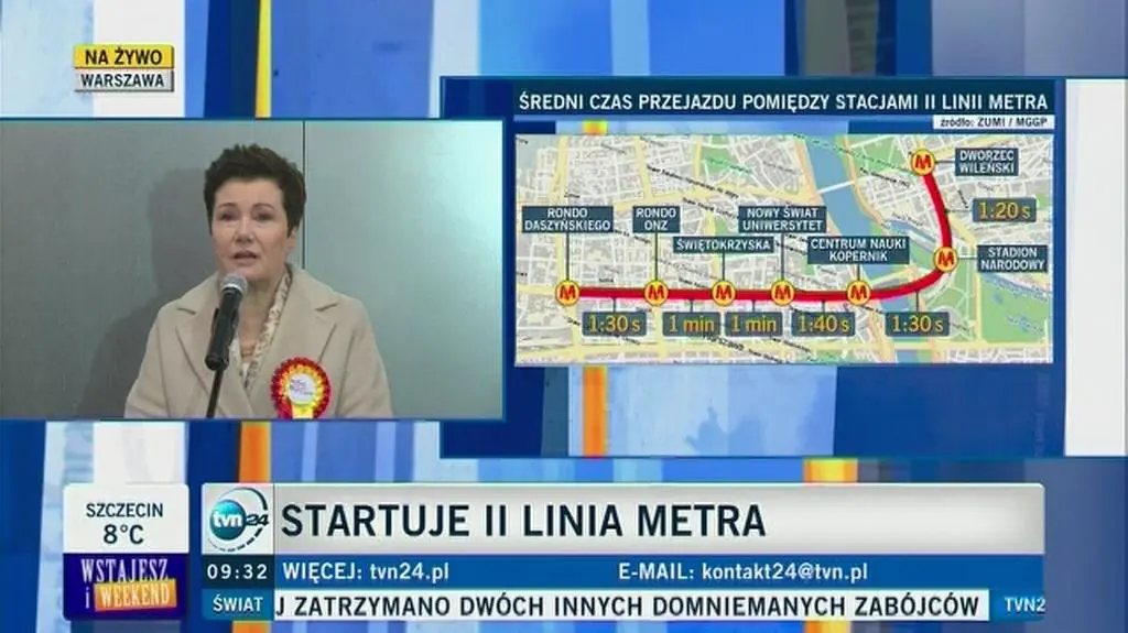 Później prezydent przekonywała, że urzędnicy określali grudniowy termin na podstawie odbiorów czterech ostatnich stacji I linii metra na bielańskim odcinku. - Antycypowaliśmy, że to będzie mniej więcej ponad 60 dni od momentu zakończenia budowy – przekonywała w TVN24 Gronkiewicz-Waltz.