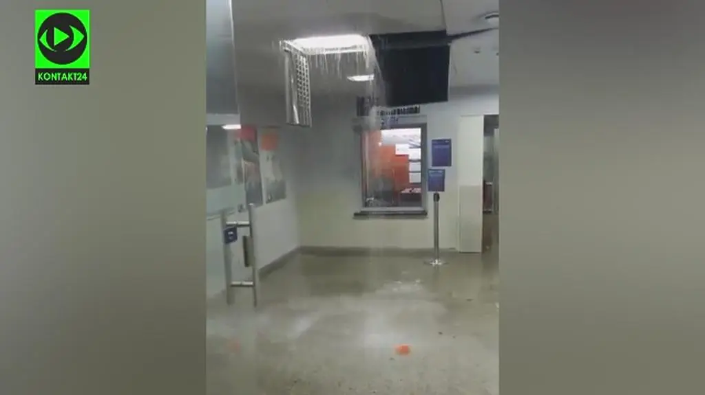 Na jednym z nadesłanych nagrań widać, jak woda leje się wprost z sufitu jednego z pomieszczeń dworca Warszawa Centralna: