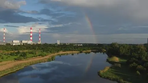 Nasz reporter Tomasz Zieliński około godziny 19 podniósł drona w okolicy Jeziorka Czerniakowskiego. Nagrał panoramę Warszawy: bloki w pobliżu Trasy Siekierkowskiej, wieżowce w dalszym planie i dach stadionu Legii Warszawa. Gdy odwrócił maszynę dostrzegł tęczę w okolicy Elktrociepłowni Siekierki.
