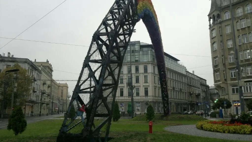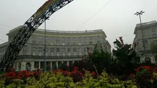 Tęcza na pl. Zbawiciela to instalacja autorstwa Julity Wójcik. Składa się ze stalowej konstrukcji i do wczoraj z 16 tysięcy sztucznych kwiatów.