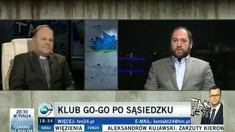 - Ksiądz prawdopodobnie nie chodzi ani do burdeli, ani klubów go-go i słabo rozróżnia. Klub go-go to nie to samo co burdel – ripostował Hartmann. - Ze strony kościoła nie widać najmniejszej zapowiedzi, że byłby w stanie pójść na jakiś kompromis. Postawa bezkompromisowa oznacza usztywnienie postawy drugiej strony – argumentował etyk.