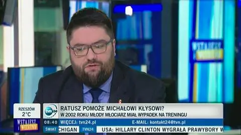 - Mam też informację, że Unia Związków Sportowych, czyli organizacja, która się zawiązała po rozpadzie federacji, też pracuje nad tym, żeby w jakiś sposób pomóc Michałowi. Mam nadzieję, że wkrótce usłyszymy konkrety z ich strony, szczególnie, że to federacja była zobowiązana do odszkodowania i renty - powiedział Jóźwiak. Jak zapewnił, miasto będzie stale pomagać Kłysowi. - Mamy kilka pomysłów na pracę wolontariacką i rehabilitacyjną - mówił w studiu TVN24 Jóźwiak.